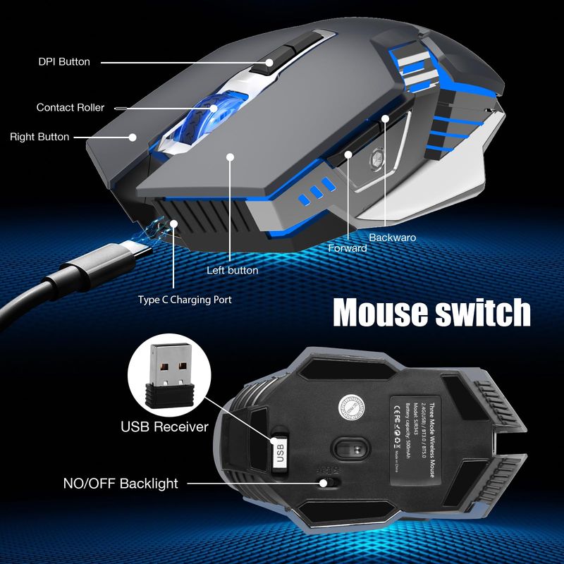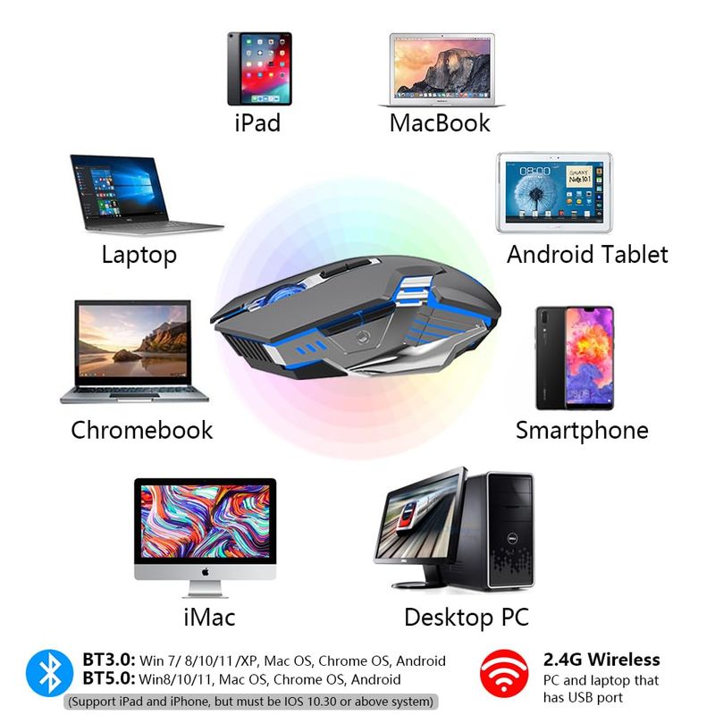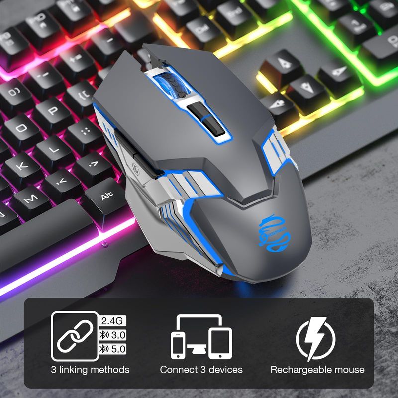Ratón Bluetooth, mouse inalámbrico para juegos, mouse silencioso recargable de 800 mAh con tres