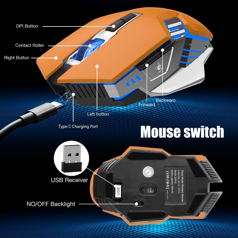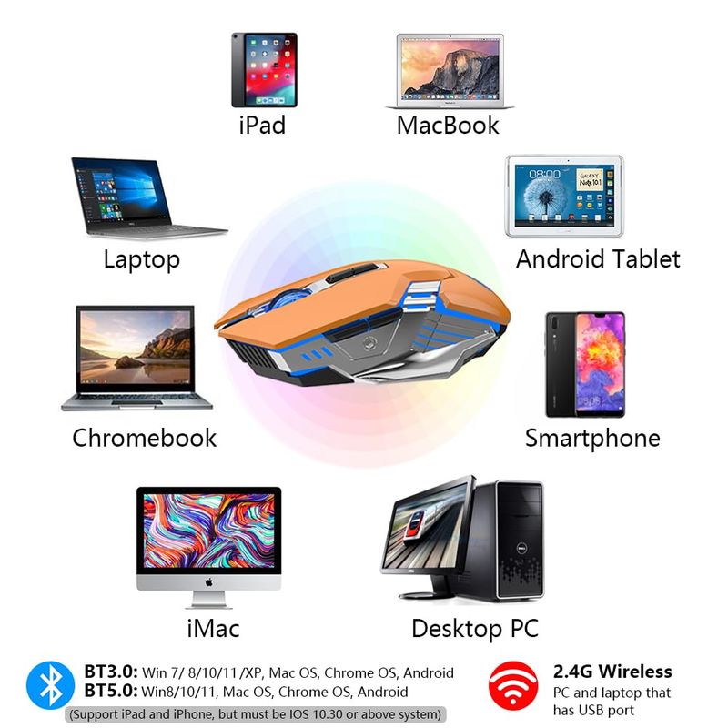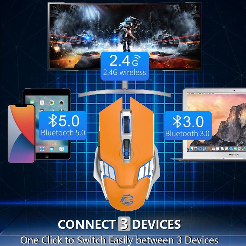 INFORMÁTICAACCESORIOS DE INFORMATICAMOUSERatón Bluetooth, mouse inalámbrico para juegos, mouse silencioso recargable de 800 mAh con tres