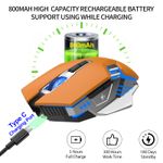 Ratón Bluetooth, mouse inalámbrico para juegos, mouse silencioso recargable de 800 mAh con tres
