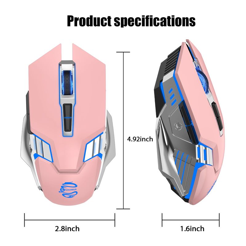 Diseño ergonómico de moda y clic silencioso: este mouse para juegos Bluetooth tiene un aspecto magnífico y hermoso, con chapado en plata brillante en ambos lados, dando al mouse una textura metálica. Material agradable al tacto para adaptarse perfectamente a tus manos, uso a largo plazo sin fatiga. El diseño de clic silencioso para todos los botones se adapta a las circunstancias para usar el mouse en público, como biblioteca, dormitorio, oficina, etc. Este diseño resulta sin preocupaciones por molestar a los demás.