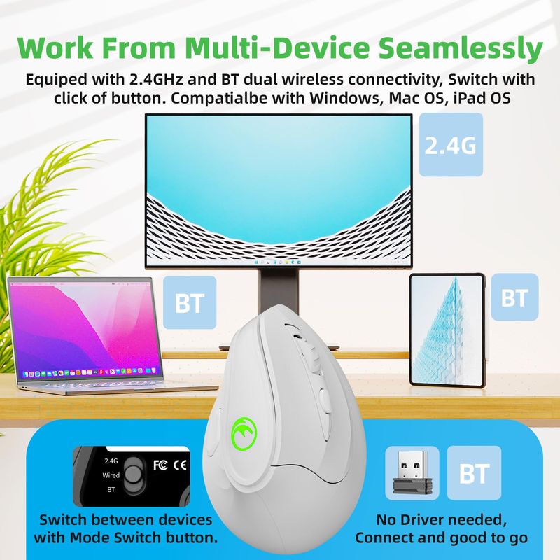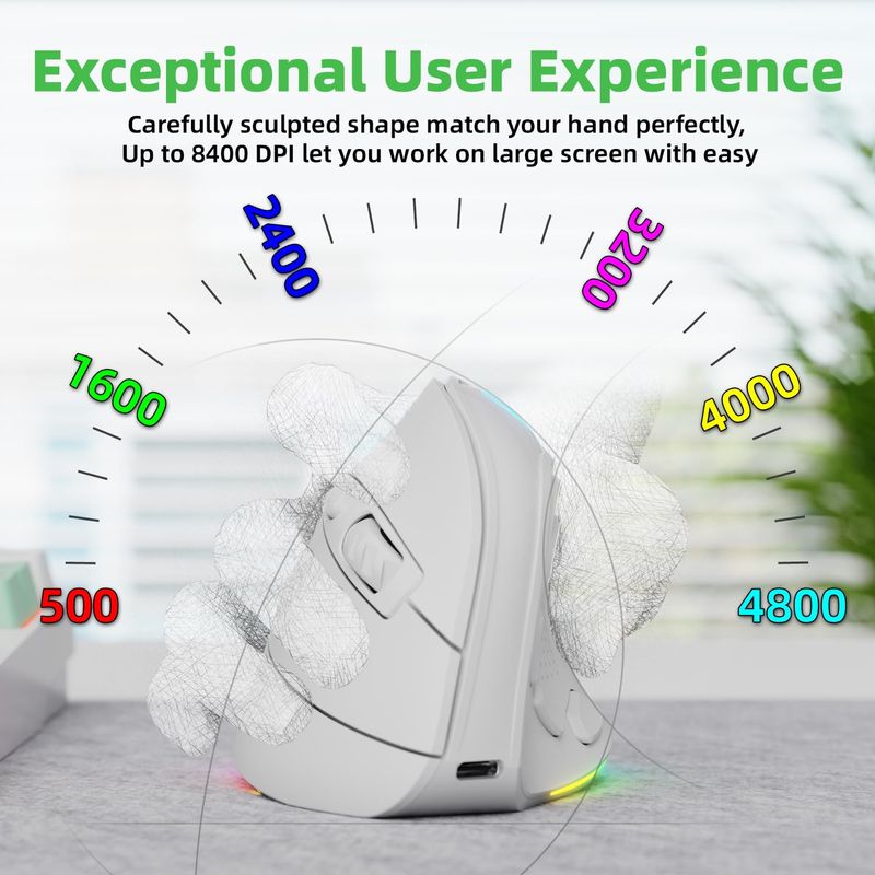 INFORMÁTICAACCESORIOS DE INFORMATICAMOUSERatón ergonómico vertical inalámbrico recargable RGB de 2.4G y BT 5.1, 5 botones laterales, máximo