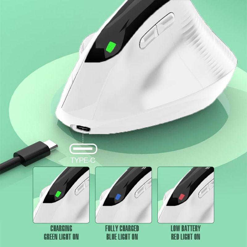 Ratón ergonómico vertical inalámbrico, recargable USB-C, 4000DPI, silencioso, alivio del túnel