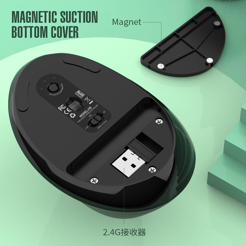 Ratón ergonómico vertical inalámbrico, recargable USB-C, 4000DPI, silencioso, alivio del túnel