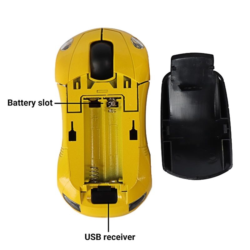 RATóN INALáMBRICO COOL CAR SHAPE MOUSE 2.4G RATONES INALáMBRICOS óPTICOS PARA PC ORDENADOR PORTáTIL (AMARILLO)