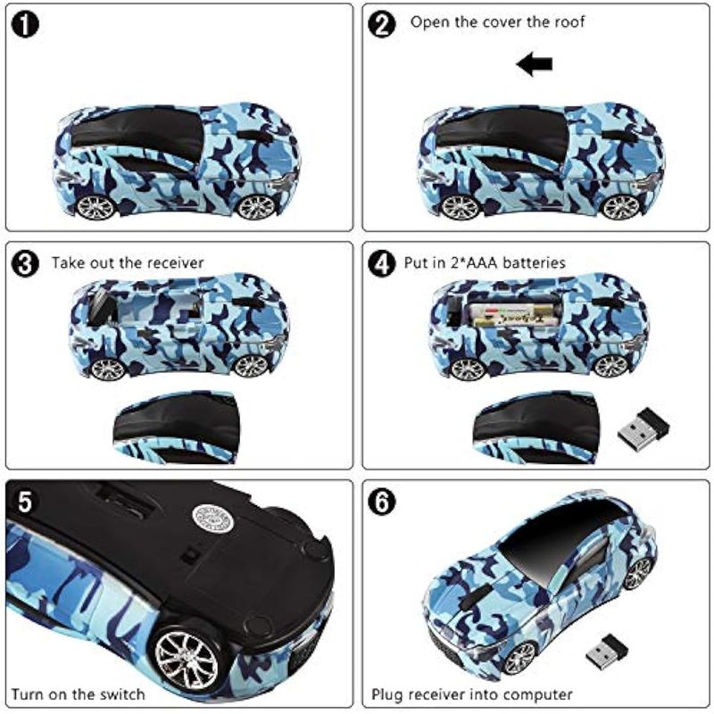 INFORMÁTICAACCESORIOS DE INFORMATICAMOUSERatón inalámbrico, mouse con forma de automóvil de 2.4 GHz, USB lindo, mouse inalámbrico de 1600