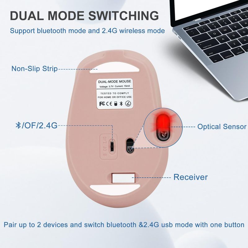 Ratón inalámbrico, mouse de computadora con Bluetooth 5.2 y 2.4G conectividad de modo dual, mouse