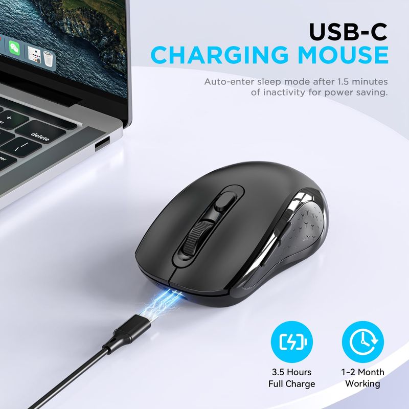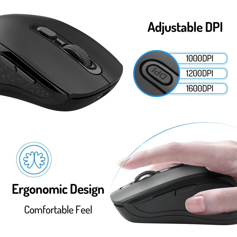 INFORMÁTICAACCESORIOS DE INFORMATICAMOUSERatón inalámbrico para computadora con BT5.0, USB-A y USB-C 2 en 1, receptor dual de 6 botones,