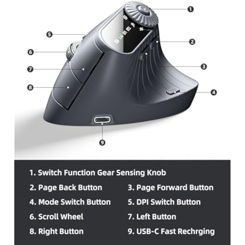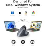 Conexiones flexibles: este mouse inalámbrico ergonómico cuenta con dos modos de conectividad BT y USB 2.4G para conexión simultánea de hasta 3 dispositivos diferentes, y es compatible con WindowsMac.