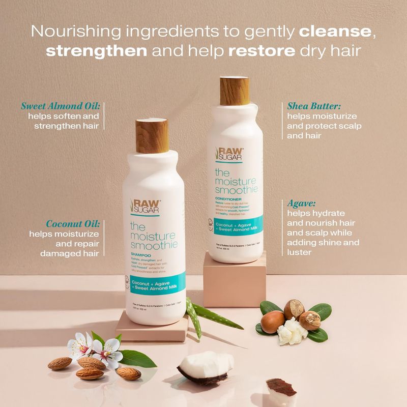 Raw Sugar Champú y acondicionador hidratante con aceite de coco, agave y leche de almendras dulces,