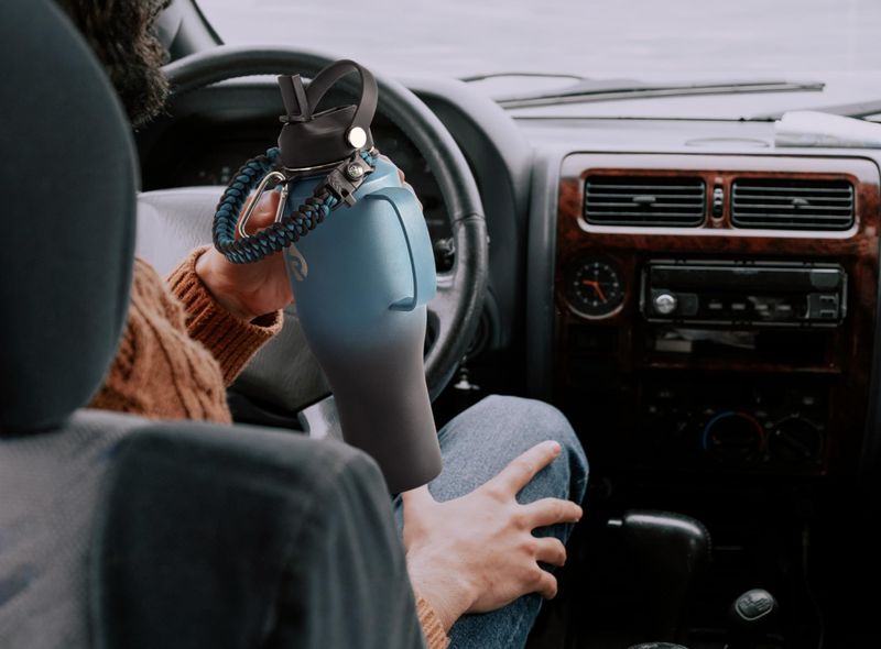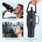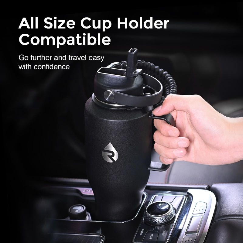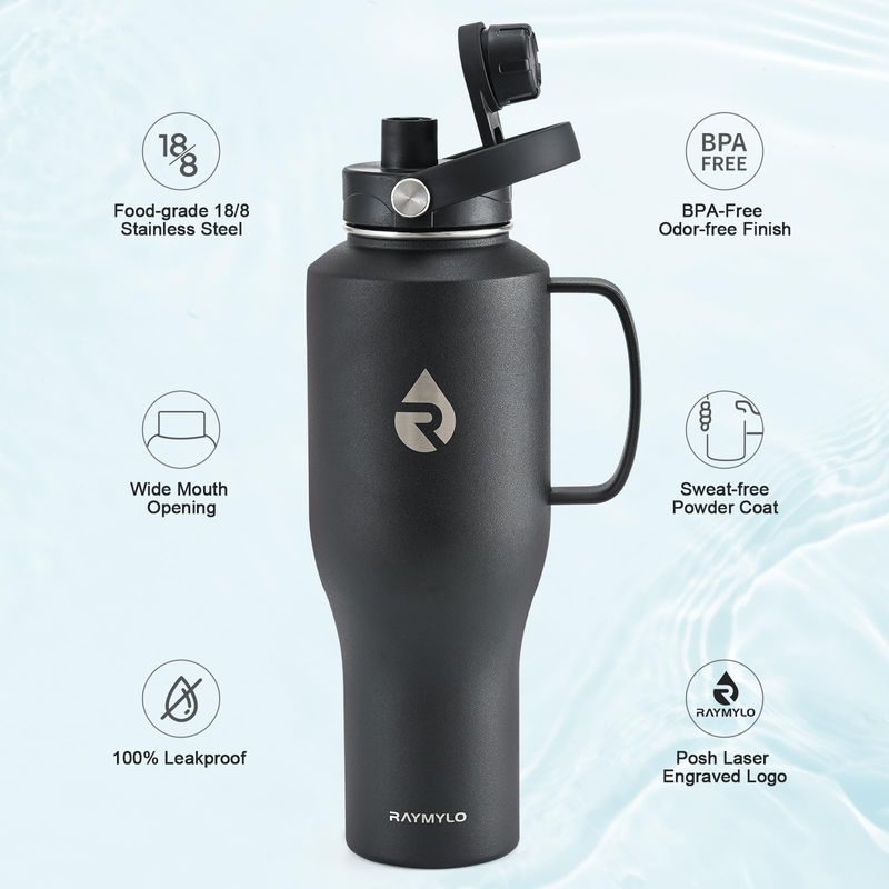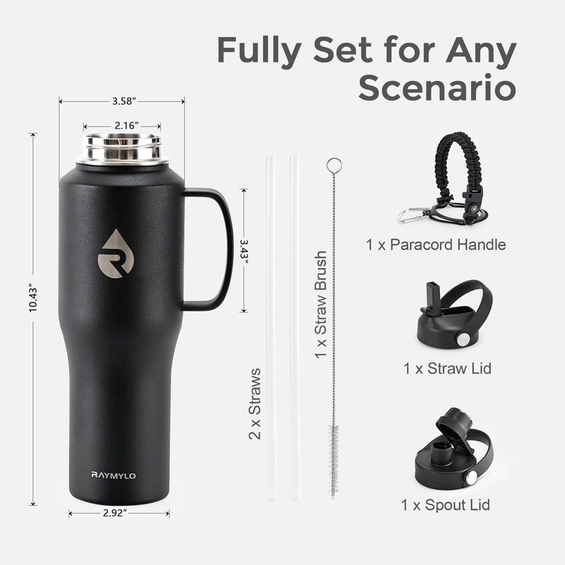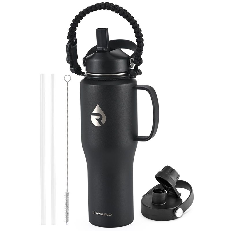 RAYMYLO Botella de agua de 32 onzas, vasos aislados con asa, tapa de popote y mango de paracaídas,