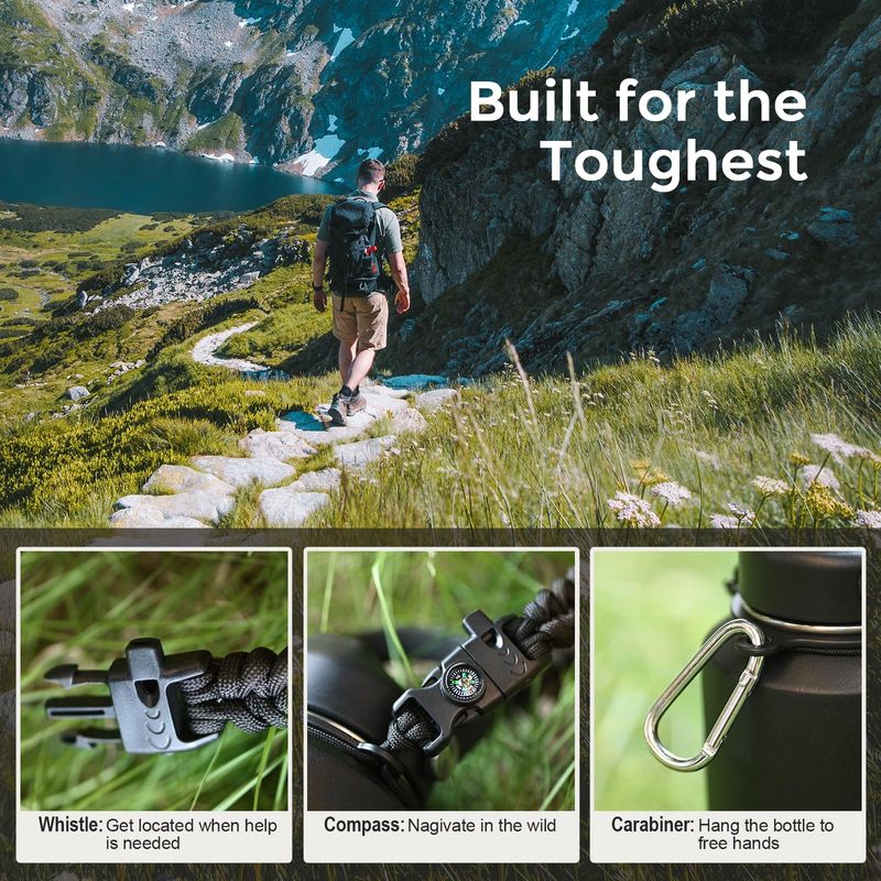 JARDÍNCAMPINGTERMOSRAYMYLO Botella de agua de 32 onzas, vasos aislados con asa, tapa de popote y mango de paracaídas,