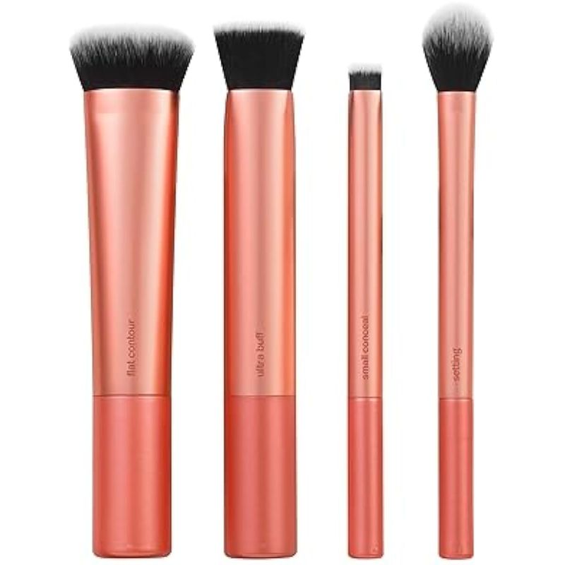 REAL TECHNIQUES KIT DE BROCHAS DE MAQUILLAJE PARA BASE FACIAL, PARA CORRECTOR, BASE Y CONTORNO, FUNCIONA CON PRODUCTOS LíQUIDOS, CREMA Y POLVO, PARA MEZCLAR Y PULIR, JUEGO DE BROCHAS DE MAQUILLAJE PARA ESCULPIR, JUEGO DE 4 PIEZAS
