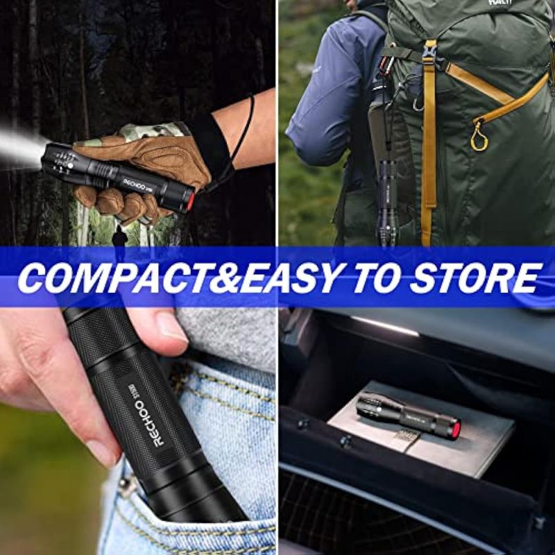 RECHOO Paquete de 4 linternas tácticas, linternas LED brillantes con zoom con lúmenes altos y 5