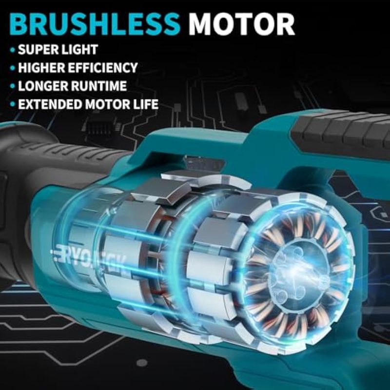 Potente motor sin escobillas: RYOJEGK esta sierra recíproca está equipada con tecnología avanzada de motor sin escobillas para lograr las ventajas duales de corte de alta eficiencia y larga vida útil. La tecnología sin escobillas extiende la durabilidad del motor, reduce los costos de mantenimiento y los sistemas de refrigeración avanzados garantizan la estabilidad de la herramienta durante largos períodos de funcionamiento y evitan el sobrecalentamiento