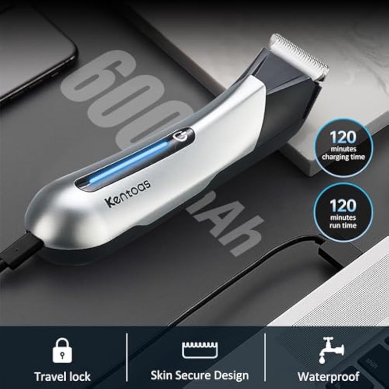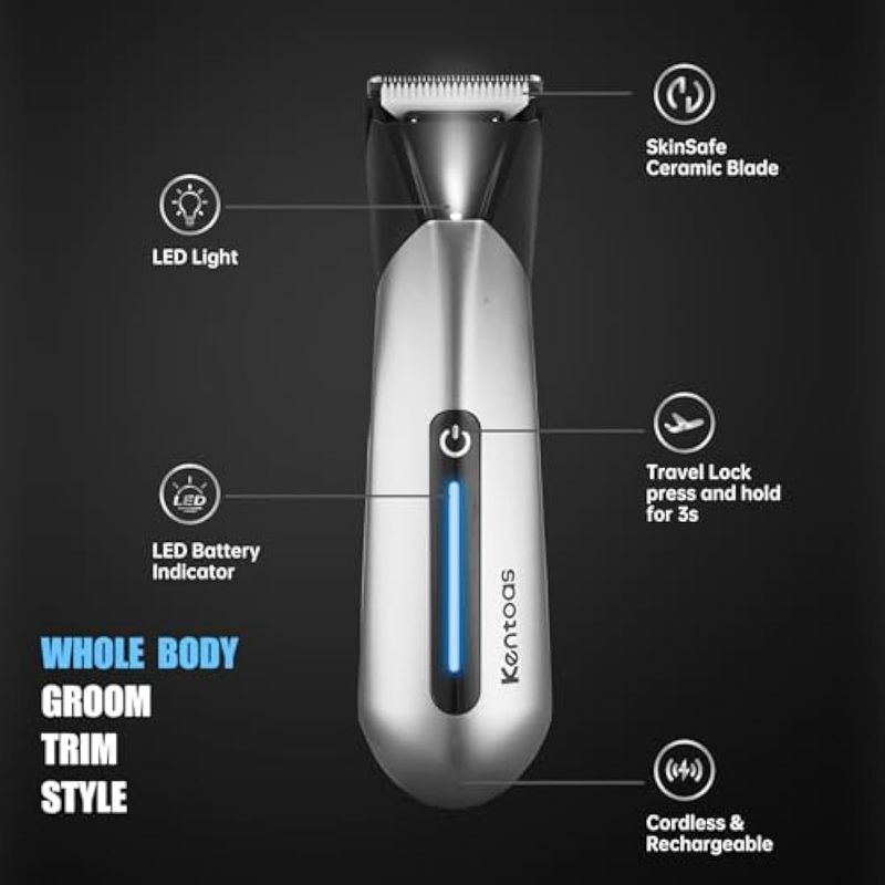Resistente al agua en húmedoseco: el recortador de bolas Kentoas tiene IPX7 impermeable que te permite usarlo en la ducha para tu cabello de espalda, vello del pecho, vello púbico, cabello de bikini y vello de las axilas.