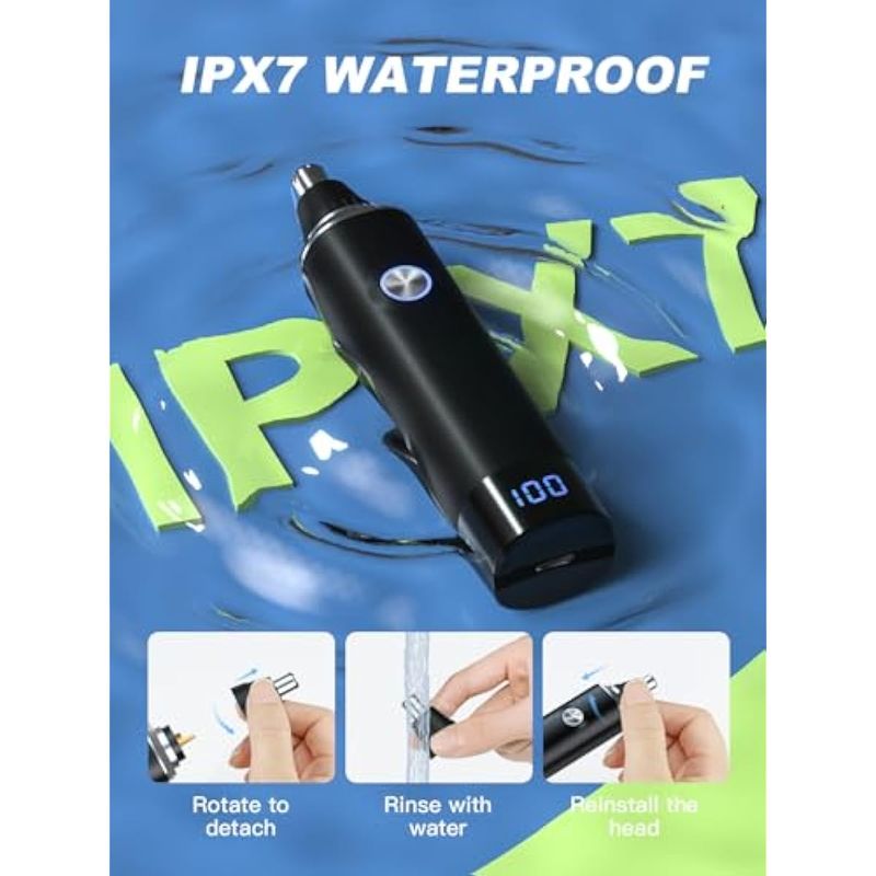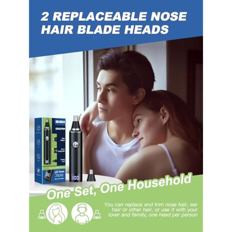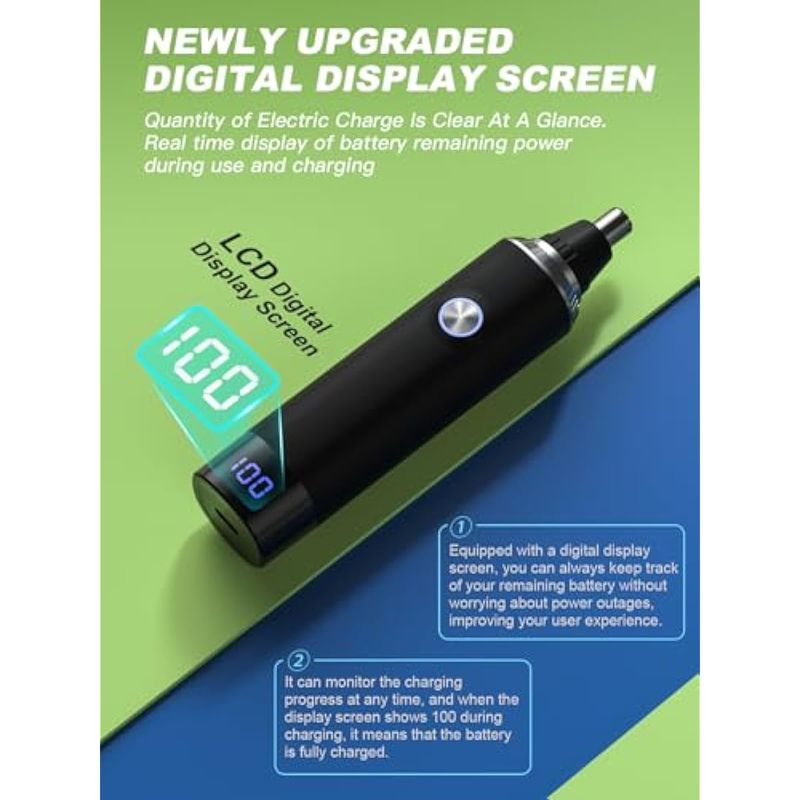 Pantalla digital mejorada: el recortador de pelo de nariz viene con una pantalla LED digital, lo que permite a los usuarios controlar fácilmente el nivel de la batería, eliminando la preocupación de que la batería se agote durante el uso. Su diseño profesional de reducción de ruido garantiza que los niveles de ruido sean más bajos que el zumbido de una abeja, considerado con el entorno del usuario y evita perturbar el sueño de los miembros de la familia.
