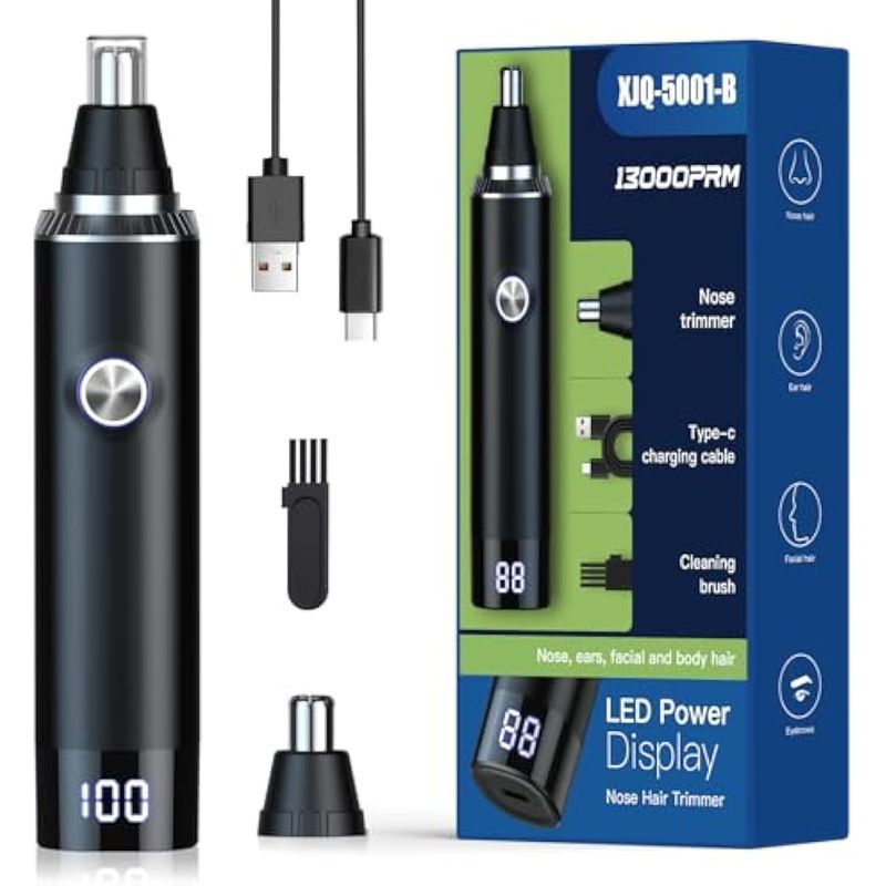 RECORTADORA DE PELO DE NARIZ Y OREJAS CON PANTALLA LED PARA HOMBRES Y MUJERES, RECORTADORA DE PELO DE NARIZ RECARGABLE POR USB, SIN DOLOR, RECORTADORA DE CEJAS Y FACIAL CON IPX7 IMPERMEABLE,