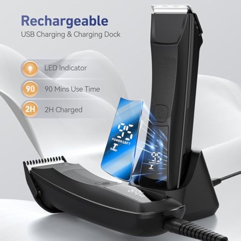Recortadora eléctrica de ingle y cuerpo para hombres, recortadora de pelo de bola/púbico impermeable