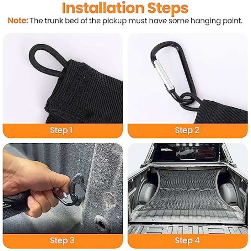 ?Fácil de instalar?La red para automóvil está diseñada con 8 mosquetones de aleación de aluminio y 6 ganchos elásticos. Nuestra red de comestibles se adapta a la mayoría de los modelos de automóviles, pero definitivamente no todos. Es especialmente importante tener en cuenta que los modelos sin un acoplador en el maletero deben instalarse con anticipación.
