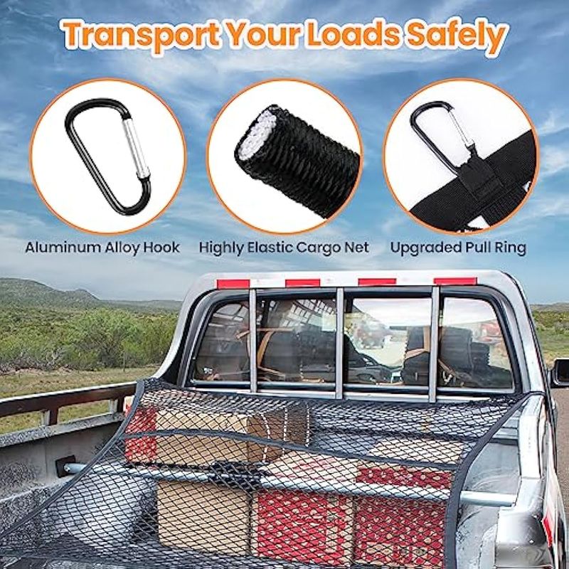 RED DE CARGA ALTAMENTE ELáSTICA PARA CAMA DE CAMIONETA, ORGANIZADOR DE MALLA ELáSTICA PARA CAJA DE CAMIONETA, ADECUADA PARA CARGAS LIGERAS DIARIAS DE CAMIONES, SE ESTIRA DE 4 X 4 PIES A 7 X 7 PIES