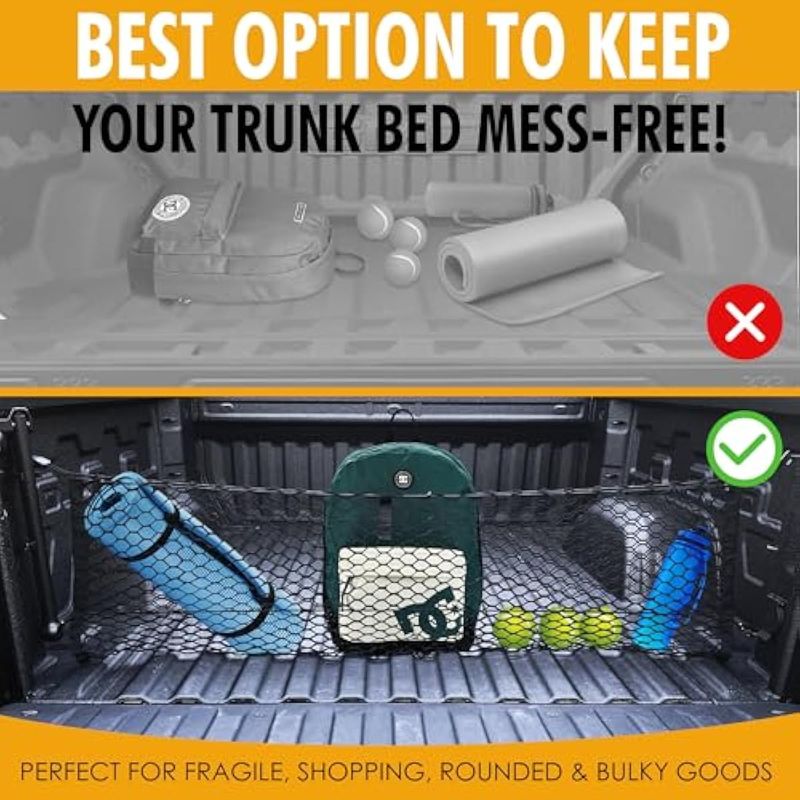 Soporta hasta 1000 libras: la red para maletero del automóvil puede contener fácilmente objetos grandes, voluminosos, frágiles y redondeados. Ideal para llevar alimentos, equipo deportivo, equipaje, ropa y mucho más. Una manera fácil de mantener las pertenencias organizadas cuando viajas o compras