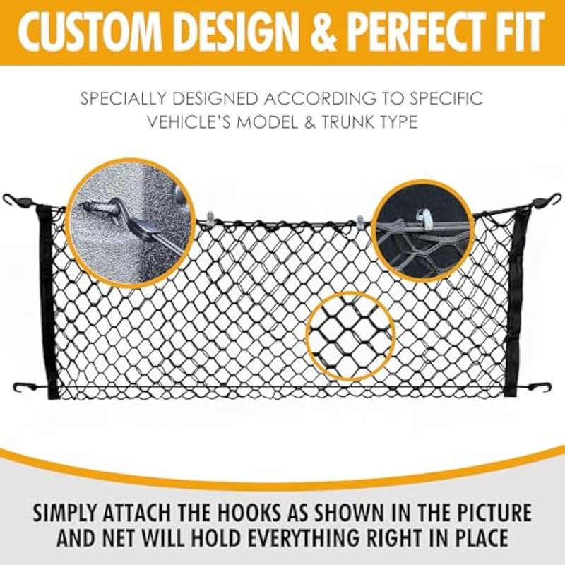 Calidad premium y larga durabilidad: cada red de carga de diseño estilo hamaca está hecha a medida de acuerdo con el año del vehículo. Hecho de polipropileno negro no tóxico, que tiene un rango elástico 3 veces mayor y una durabilidad 2 veces más larga en comparación con redes similares