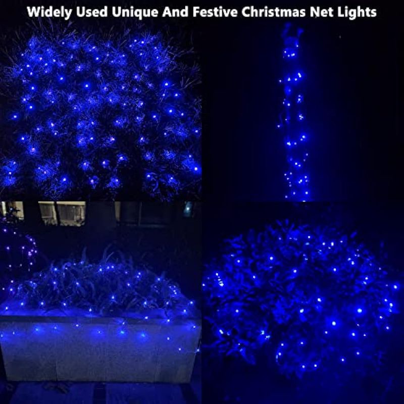 Red de luces LED azules de Navidad para exteriores, luces de decoración de Navidad para exteriores,