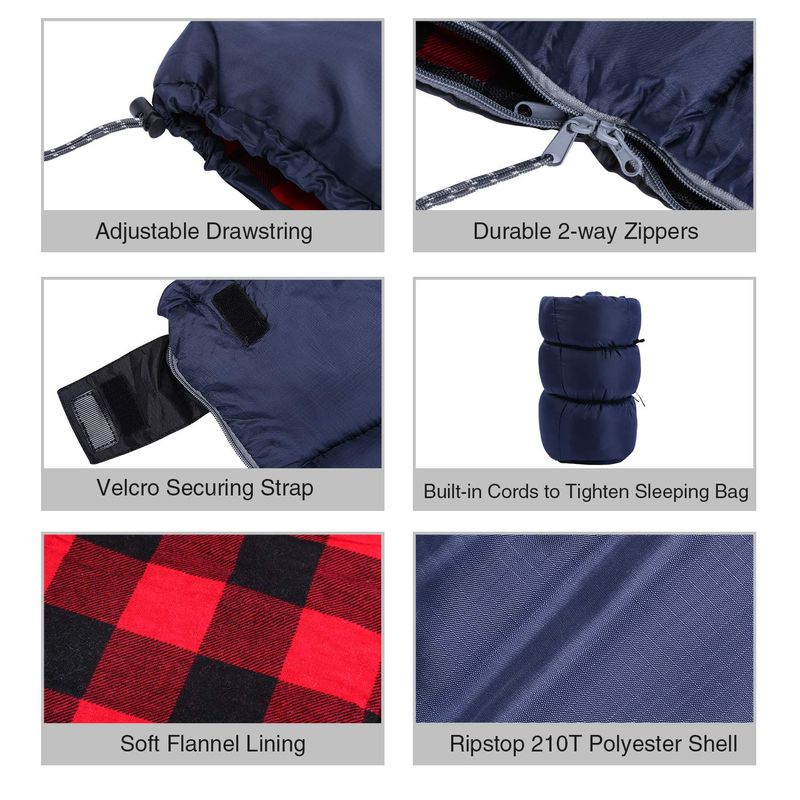 REDCAMP Cotton Flannel Sleeping Bag for Camping Backpacking, Adults Cold Weather Envelope Sleeping