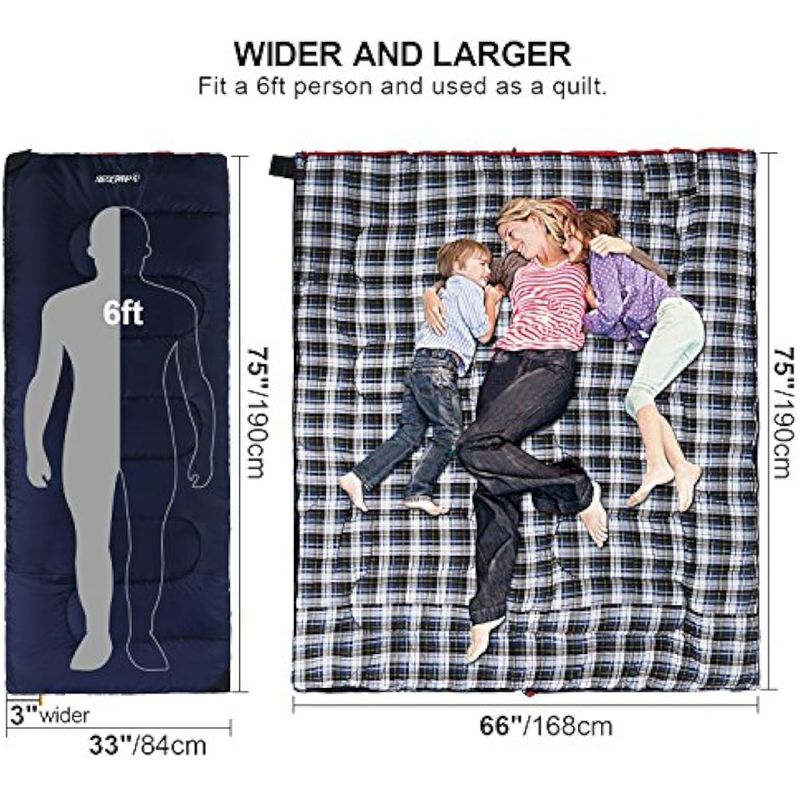 REDCAMP COTTON FLANNEL SLEEPING BAG FOR CAMPING BACKPACKING, ADULTS COLD WEATHER ENVELOPE SLEEPING BAGS WITH 2/3/4LBS FILLING