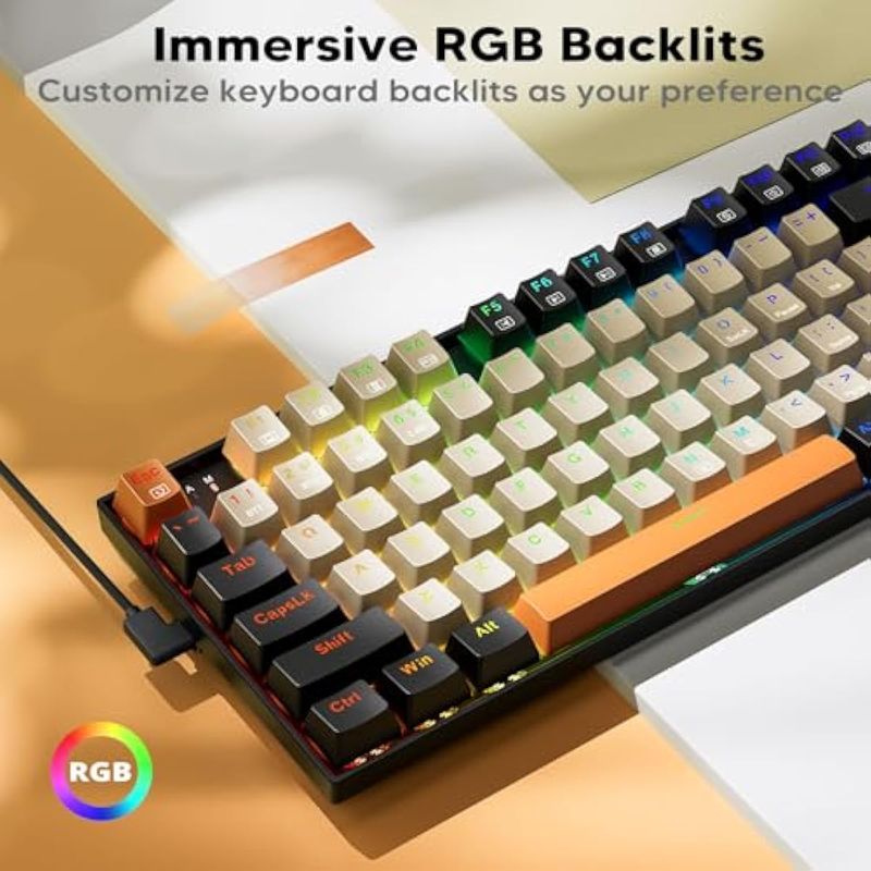 Interruptores rojos sensibles: el teclado mecánico para juegos K636CLO cuenta con interruptor rojo que te ofrece un sonido satisfactorio y una retroalimentación lineal, requiere menos fuerza para presionar y las teclas se sienten más suaves y fáciles de usar. Es mejor para rpgs y mmos, juegos imo.