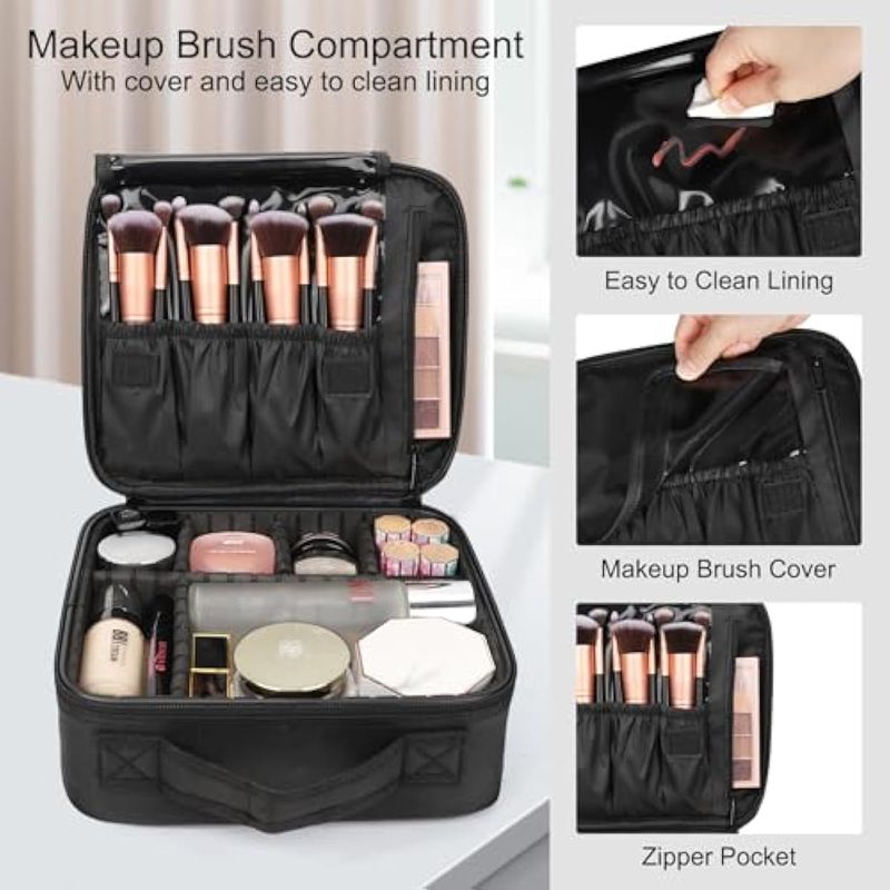 Relavel - Estuche de maquillaje para viajes, organizador portátil para estilistas, con separadores