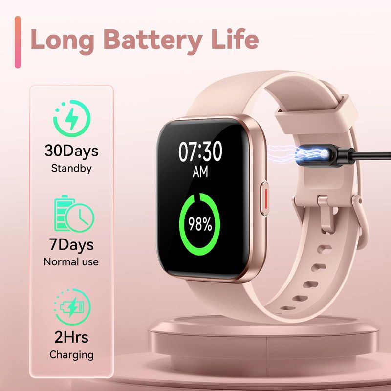 Batería de 14 días de duración y resistente al agua 5 ATM: carga completa durante 2 horas, soporta 14 días de tiempo en espera. Gran capacidad y diseño de bajo consumo de energía que ofrece una mayor resistencia. El reloj de fitness AEAC está diseñado con resistencia al agua 5 ATM, se puede llevar al lavarse las manos, bajo la lluvia y nadar