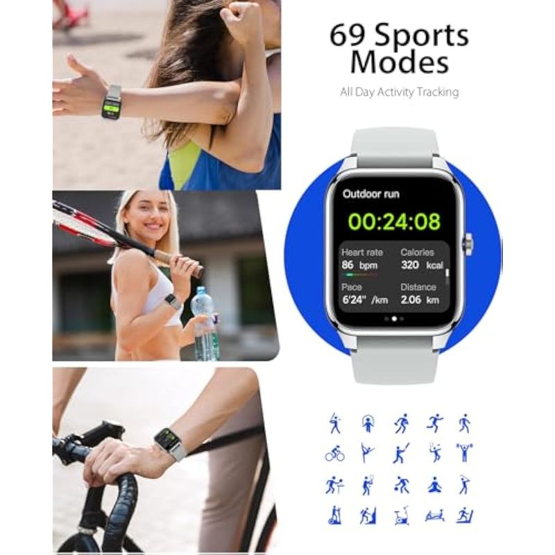 TELEFONIASMARTWATCHReloj inteligente, pantalla AMOLED de 1.78 pulgadas 368 x 448 HD, 69 modos deportivos con frecuencia