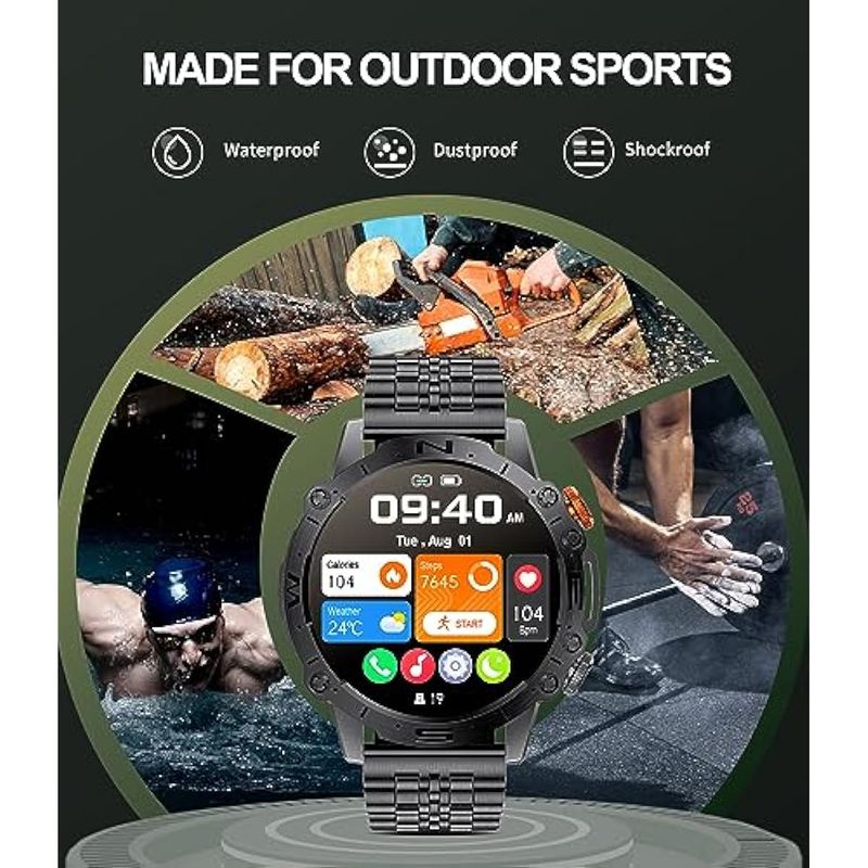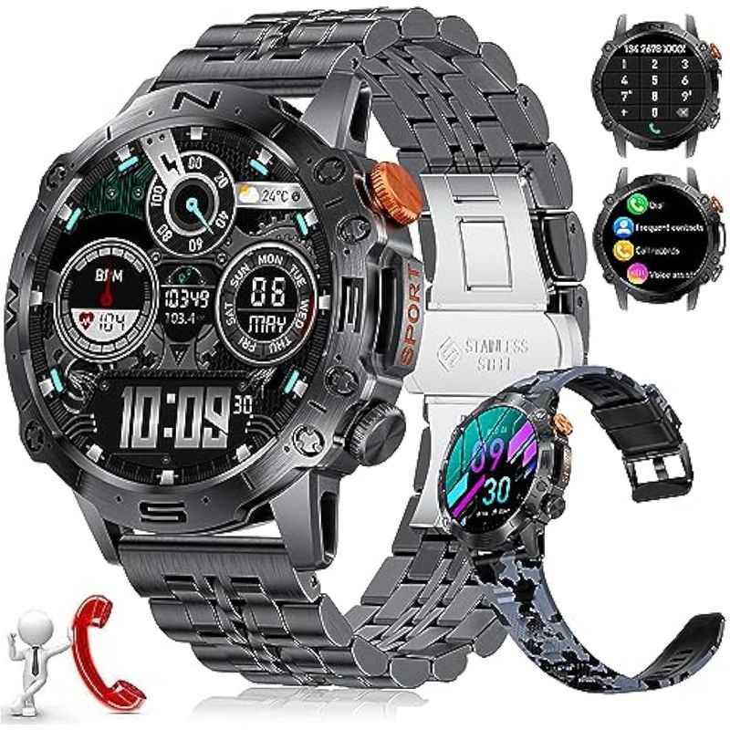 TELEFONIASMARTWATCHRelojes inteligentes para hombres militares con pantalla táctil AMOLED grande, siempre en pantalla,