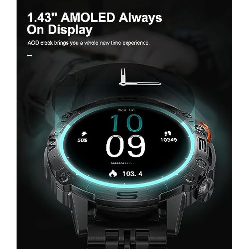 Relojes inteligentes para hombres militares con pantalla táctil AMOLED grande, siempre en pantalla,
