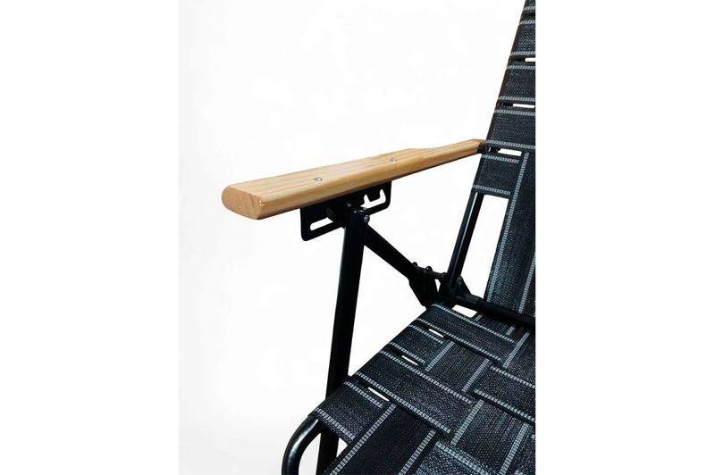 Su estructura de caño de acero de 1” garantiza resistencia, mientras que la pintura poliéster de alta resistencia en color blanco protege contra el desgaste. Los apoyabrazos de madera suman confort y un toque natural. Su mecanismo reclinable lo convierte en la opción perfecta para la playa, el jardín o el patio.