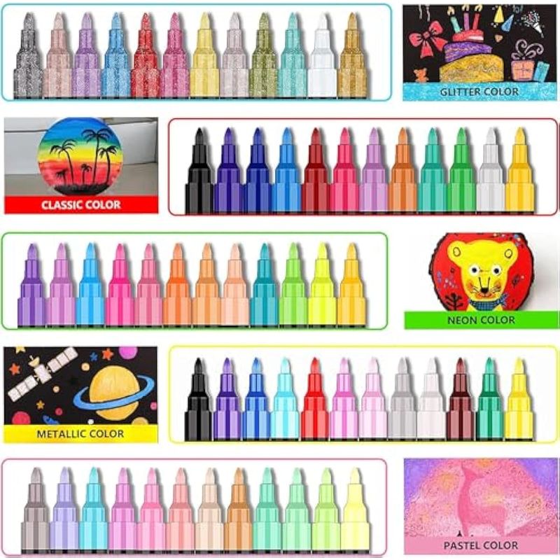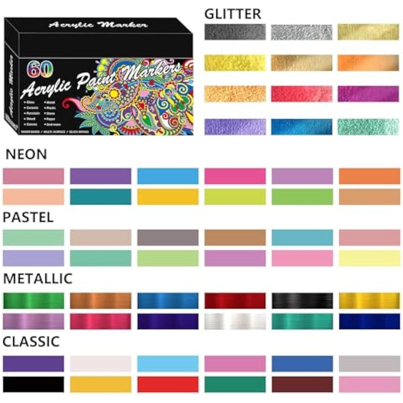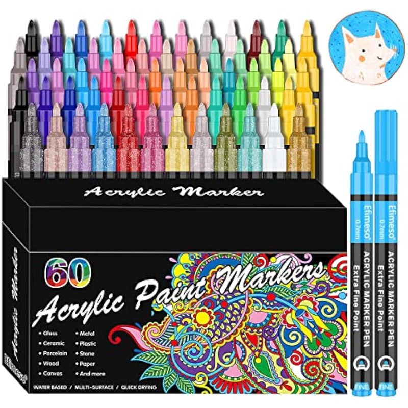 RESTLY Bolígrafos de pintura acrílica, 60 colores, marcadores de pintura acrílica, 0.028 in,