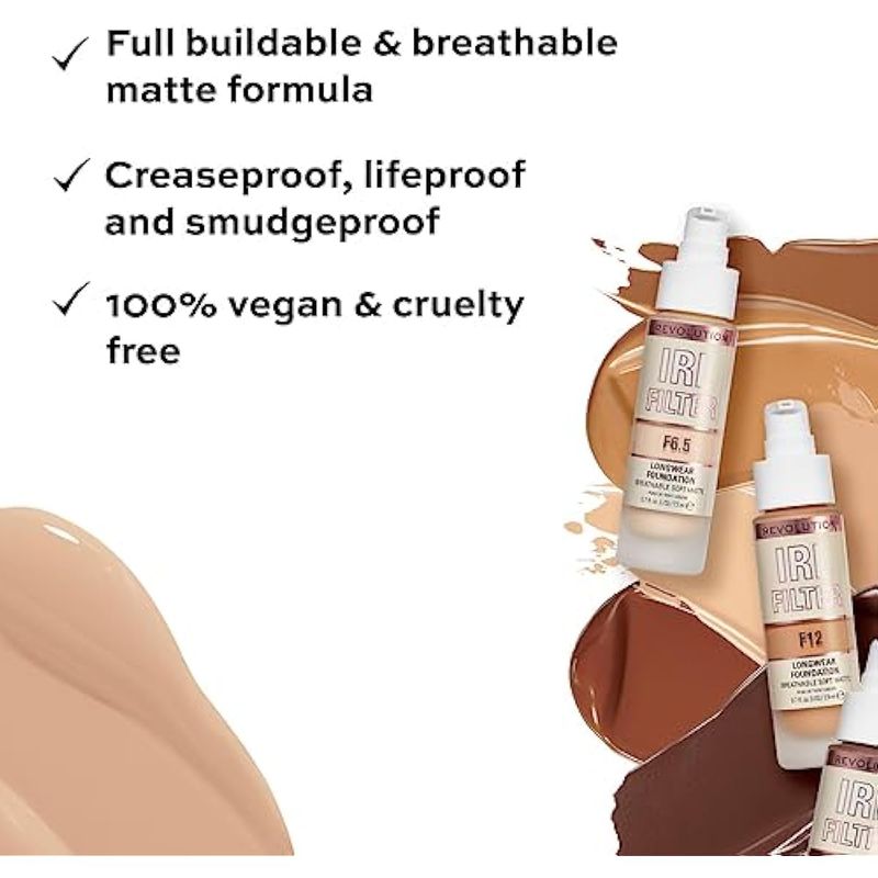 Revolution Beauty, IRL Filter - Base de larga duración, fórmula suave y transpirable, cobertura