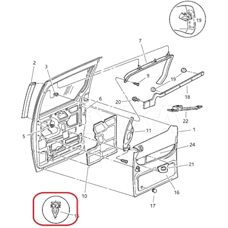 Otros nombres:Retenedor del panel de molde, Sujetador del panel del ajuste de la puerta, Clip del panel del ajuste de la puerta, Retenedor del panel del ajuste del interior de la puerta, 06504014, Panel del ajuste de la puerta del retenedor