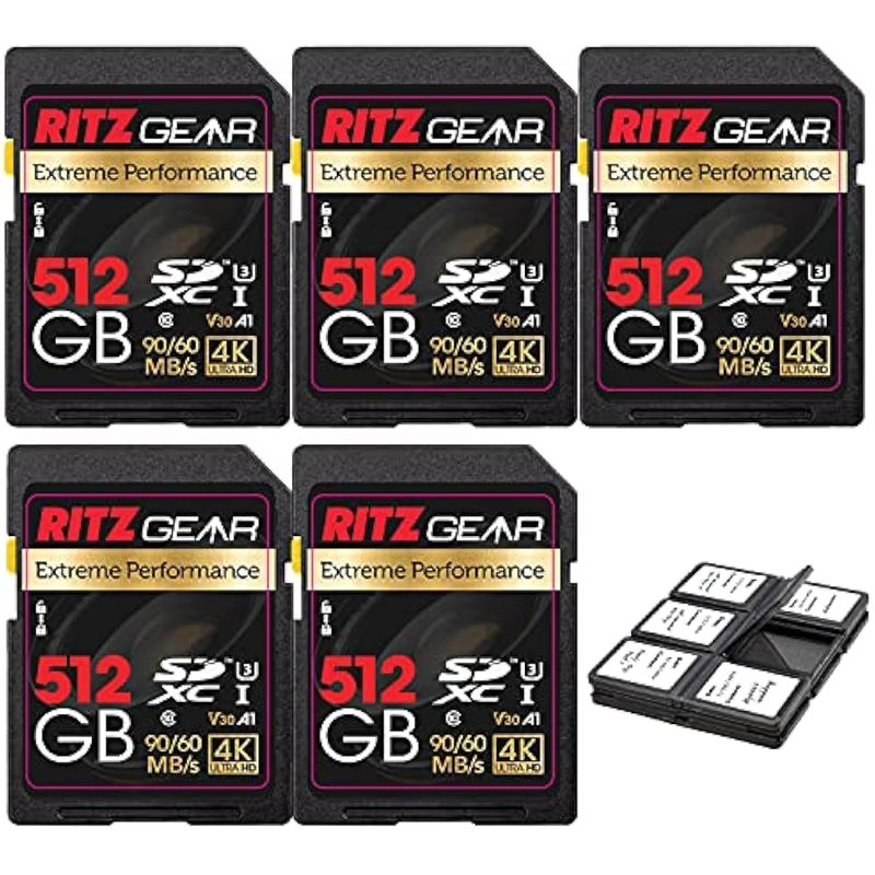 RITZ GEAR TARJETA DE MEMORIA SDXC UHS-I DE ALTA VELOCIDAD DE RENDIMIENTO EXTREMO 512 GB 90/60 MB/S U3 A1 C10 V30 (5 UNIDADES) DISEñADA PARA DISPOSITIVOS SD QUE PUEDEN CAPTURAR VIDEO FULL HD, 3D Y 4K, ASí COMO FOTOGRAFíA EN BRUTO