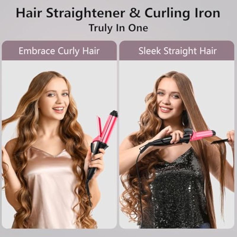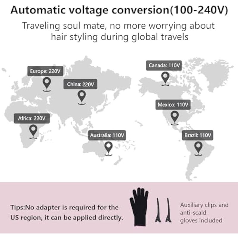 Rizador de viaje, rizador de doble voltaje mejorado de 1 pulgada, alisador y rizador de cabello 2 en