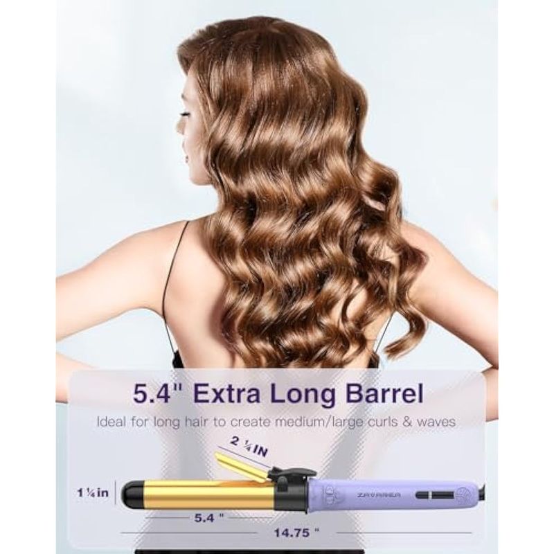 Barril extra largo y grande: el rizador de pelo giratorio ZAVAREA cuenta con un barril de titanio de 1.25 x 5.4 pulgadas que se calienta rápidamente y mantiene una temperatura constante para rizos que duran todo el día. El rizador automático de 1 14 pulgadas es un rizador versátil para crear una variedad de estilos de rizos, incluyendo rizos medianos a grandes y ondas de playa, mientras que el rizador automático de barril extra largo de 5.4 pulgadas es adecuado para varias longitudes de cabello, con particular versatilidad para cabello medio a largo.