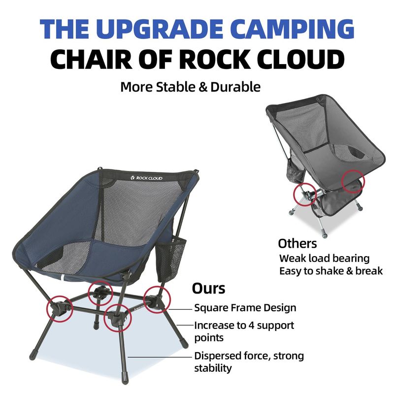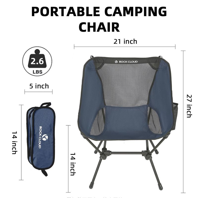 ROCK CLOUD PAQUETE DE 2 SILLAS DE CAMPAMENTO COMPACTAS PORTáTILES Y ULTRALIGERAS, SILLAS PLEGABLES PARA EXTERIORES, TAMAñO GRANDE PARA CAMPAMENTO, SENDERISMO, MOCHILERO, CéSPED, PLAYA, DEPORTES, DOS ALTURAS AJUSTABLES (NEGRO, GRANDE)