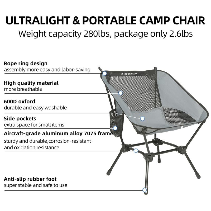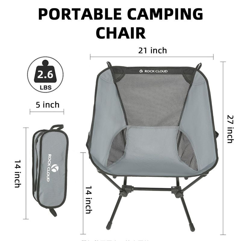 ROCK CLOUD Paquete de 2 sillas de campamento compactas portátiles y ultraligeras, sillas plegables