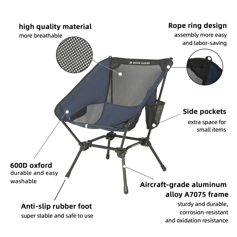 ROCK CLOUD PAQUETE DE 2 SILLAS DE CAMPAMENTO COMPACTAS PORTáTILES Y ULTRALIGERAS, SILLAS PLEGABLES PARA EXTERIORES, TAMAñO GRANDE PARA CAMPAMENTO, SENDERISMO, MOCHILERO, CéSPED, PLAYA, DEPORTES, DOS ALTURAS AJUSTABLES (NEGRO, GRANDE)