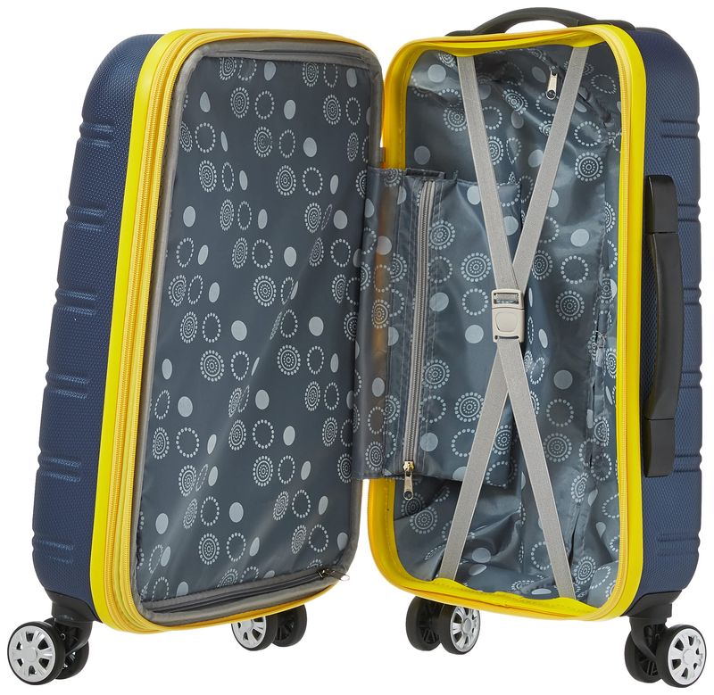 Este equipaje de mano está hecho de plástico ABS. Los principales beneficios de este material: es extremadamente ligero, es duradero y protege el contenido de tu equipaje. Las ruedas giratorias multidireccionales giran 360 grados para una fácil maniobrabilidad. Este equipaje te ofrece más espacio para tus artículos mientras que te evita recargos por exceso de peso impuestos por la mayoría de las aerolíneas. Cuatro ruedas giratorias dobles multidireccionales para una fácil movilidad. Moderno mango telescópico interno cromado con botón. Bolsillo interior de malla y cremallera y bolsillo elástico. Mide 20 x 13 x 9 pulgadas y pesa 7.5 libras. El diseño de la rueda puede variar entre color negro y plateado.