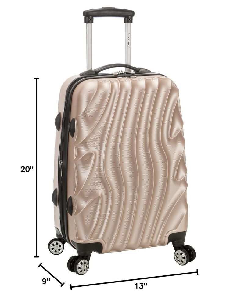 Este equipaje de mano está hecho de plástico ABS. Los principales beneficios de este material: es extremadamente ligero, es duradero y protege el contenido de tu equipaje. Las ruedas giratorias multidireccionales giran 360 grados para una fácil maniobrabilidad. Este equipaje te ofrece más espacio para tus artículos mientras que te evita recargos por exceso de peso impuestos por la mayoría de las aerolíneas. Cuatro ruedas giratorias dobles multidireccionales para una fácil movilidad. Moderno mango telescópico interno cromado con botón. Bolsillo interior de malla y cremallera y bolsillo elástico. Mide 20 x 13 x 9 pulgadas y pesa 7.5 libras. El diseño de la rueda puede variar entre color negro y plateado.