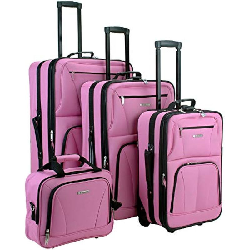 EQUIPAJEVALIJASRockland juego de 4 piezas de valijas con ruedas y bolsas para viaje, Rosado), F32-PINK