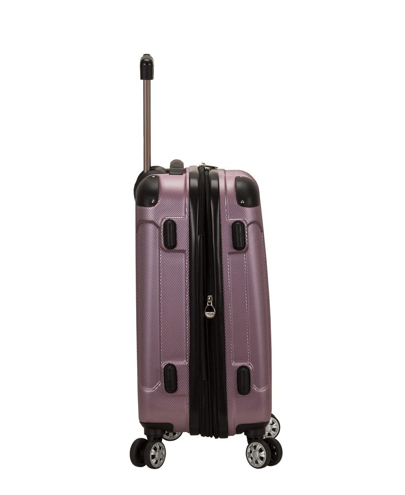 Este equipaje de mano está hecho de ABS. Este material es extremadamente ligero, duradero y protege el contenido de tu equipaje. Cuatro ruedas giratorias multidireccionales giran 360 grados para una fácil maniobrabilidad. Este equipaje te permite empacar más mientras evita los sobrecargos de peso impuestos por la mayoría de las aerolíneas. Ruedas giratorias multidireccionales para una fácil maniobrabilidad. Mango telescópico interno cromado moderno con mango de botón. Bolsillo interior de malla y cremallera y bolsillo elástico de 5 años de 22 x 13. 5 x 10 pulgadas con ruedas pesa 7. 5 libras.