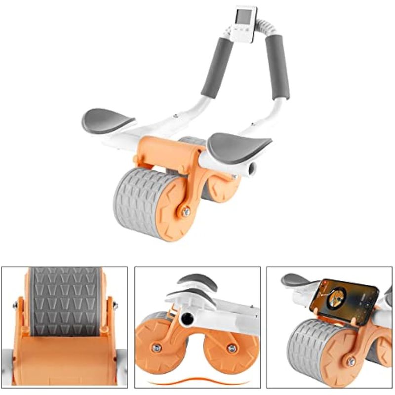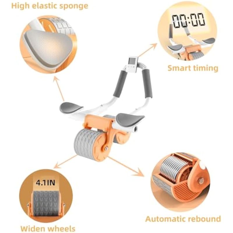 Rodillo de ejercicio abdominal de rebote automático con soporte de codo y temporizador, equipo de